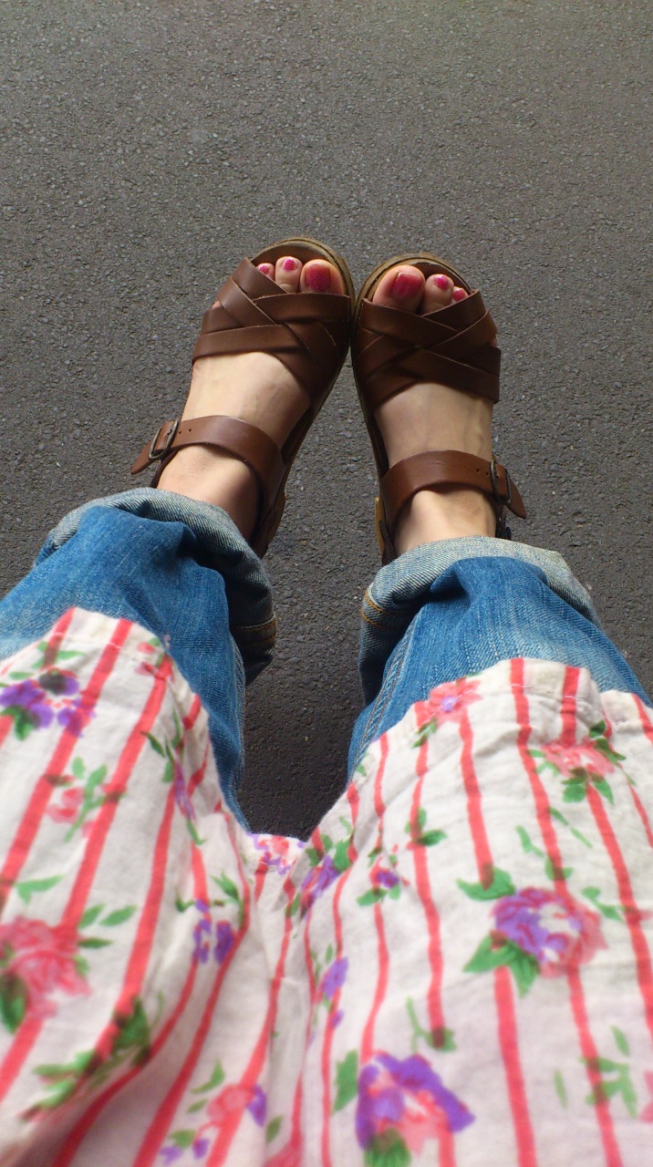 このサンダルは歩くとぽっくりぽっくり音がします。お気に入り。