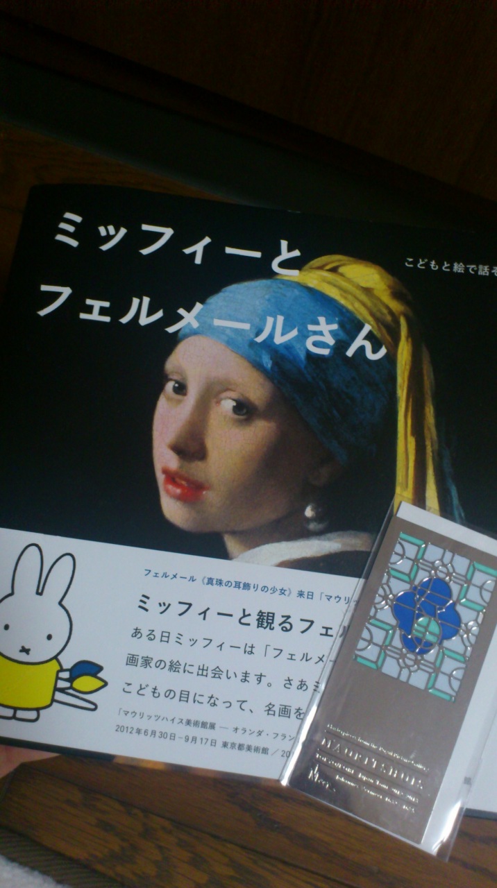 青と黄 本当はミッフィーちゃんのぬいぐるみが欲しかったんだけれど、置くスペースもないので絵本にしました。でも色んな絵も載ってたから、これにして正解。フェルメールの絵に何度か登場するステンドグラスの栞も買っちゃった。青ってキレイだなぁ〜。