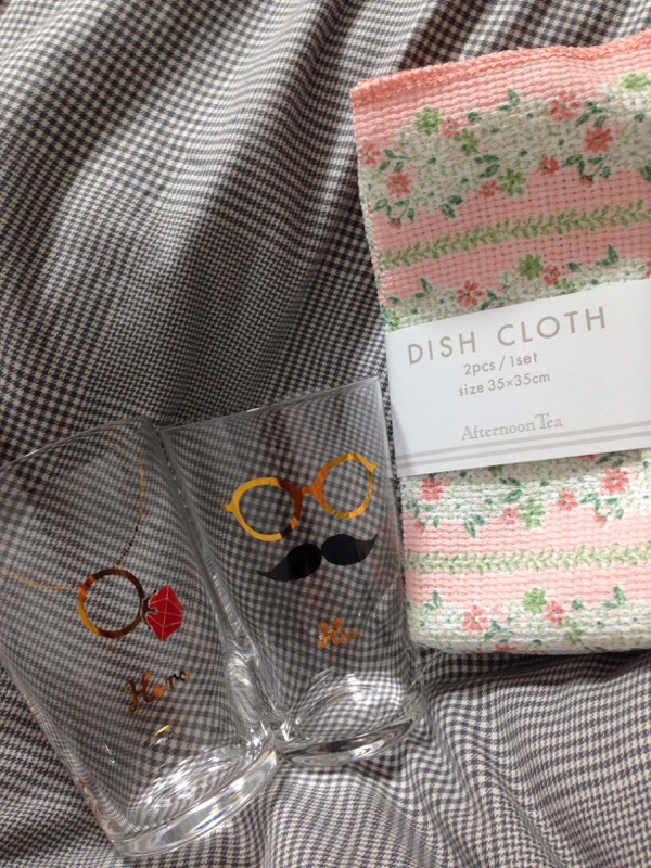 おしゃれなグラスと布巾をいただきました♪ありがとう〜!